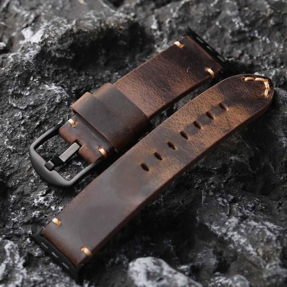 Product Details:Material: Head layer cowhideSize: 49MM 45MM 44MM 42MM 41 40MMThickness: 4MMLength: 125MM+75MMColor: BrownBuckle: Stainless steelCraftsmanship: Hand sewn coarse thread